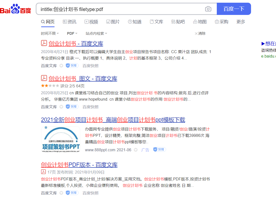 高级搜索命令intitle 也可以同时添加双关键词。语法为:关键词+intitle:关键词。在这种形式中,第一个 关键词 之间需要一个空格 intitle (英文)