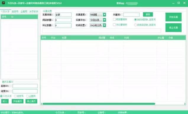 如果你觉得手动采集太累,也可以通过软件中的初始ID和结束ID的功能,来自动完成。比如“八卦宝宝”头条号ID是:5905641527,可以设置为初始ID,结束ID随便写个:6876598893,只要比5905641527大就没问题。但是这样采集的头条ID,在质量上当然就会差一点。