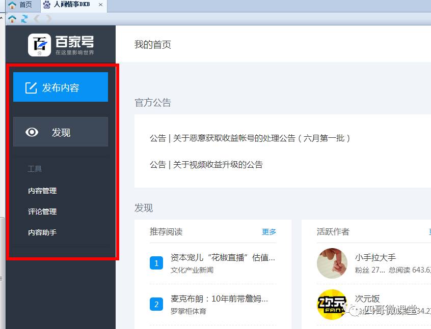 2,权限屏蔽:普通编辑进入软件前端,登录百家号以后 仅能对文章部分有操作权限,不能查看收益和指数