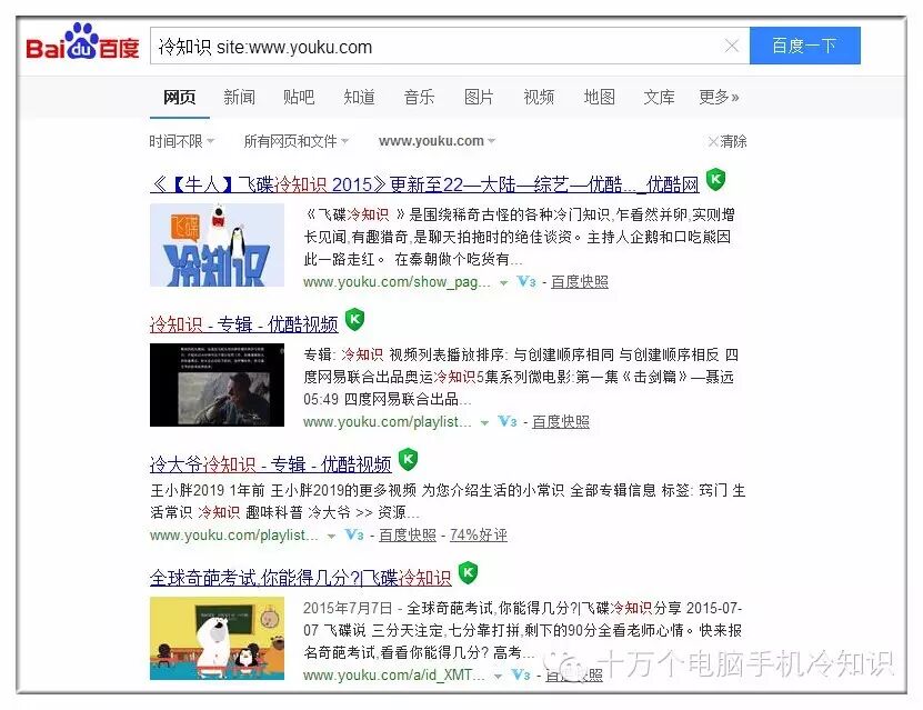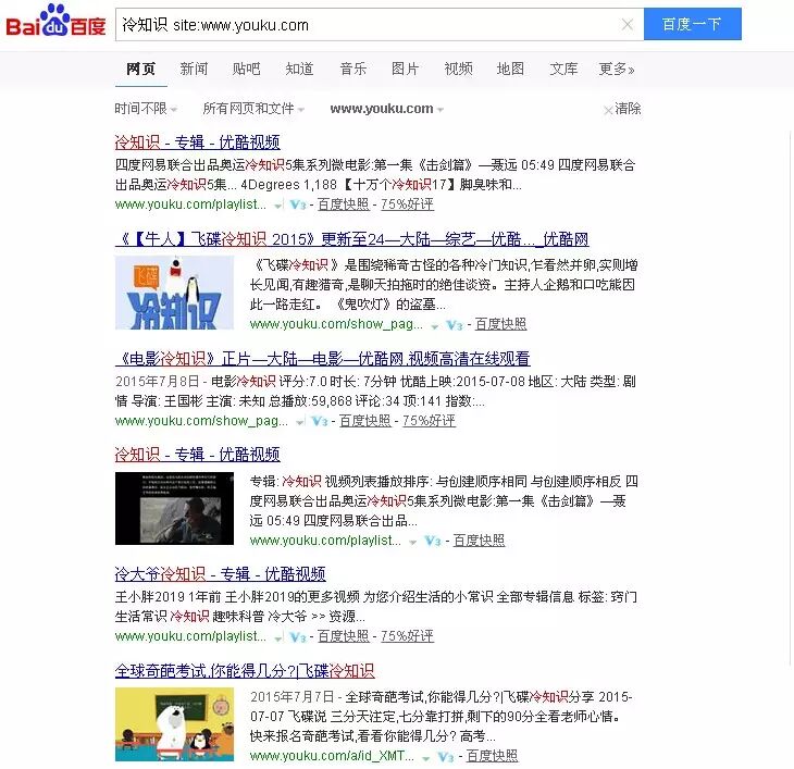 例如:冷知识要从“优酷”中找含有“冷知识”三个字的视频,如图所示: