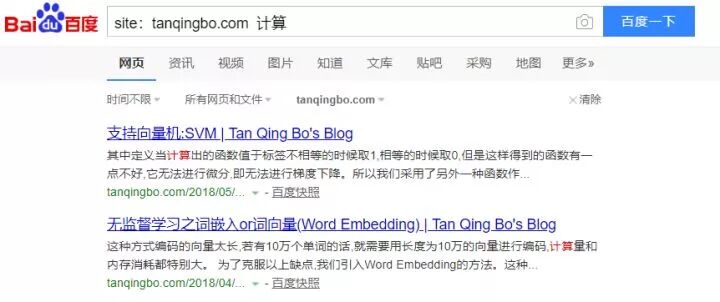 比如我只想在我自己博客网站上搜索“计算”这个信息,我可以使用关键词 site:计算 进行搜索,这样搜出来的信息都是我博客上的内容。如下图: