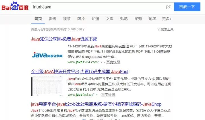 在网页链接中我们可以限定关键词进行搜索,只要在关键词前面加:inurl: