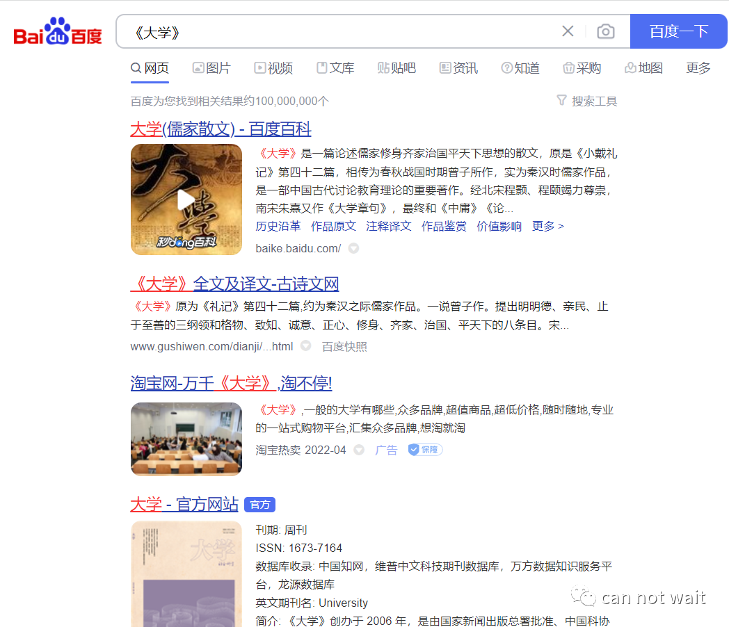 查询词加上书名号《》有两层特殊功能,一是书名号会出现在搜索结果中;二是被书名号括起来的内容不会被拆分。