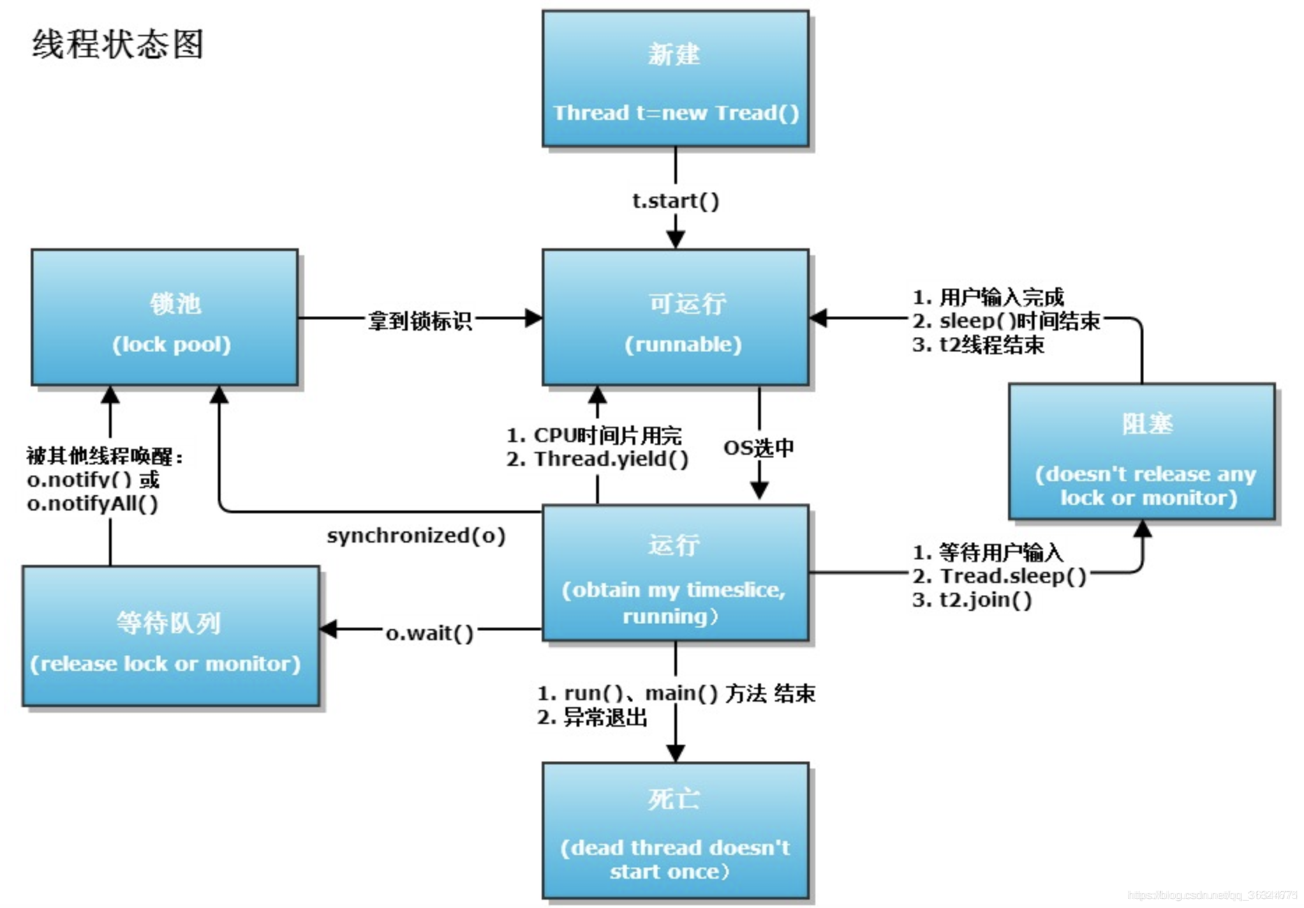 线程只有6种状态。整个生命周期就是这几种状态的切换。