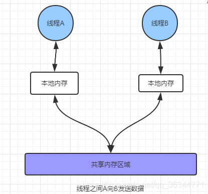 JMM(java memory model)决定一个线程对共享变量的写入何时对另一个线程可见,JMM定义了线程和主内存之间的具象关系:共享变量储存在主显存(Main Memory)中,每个线程都有一个私有的本地显存(Local Memory),本地显存保存了被该线程使用到的主显存的副本拷贝,线程对变量的所有操作都必须在工作显存中进行,而不能直接读写主显存中的变量。