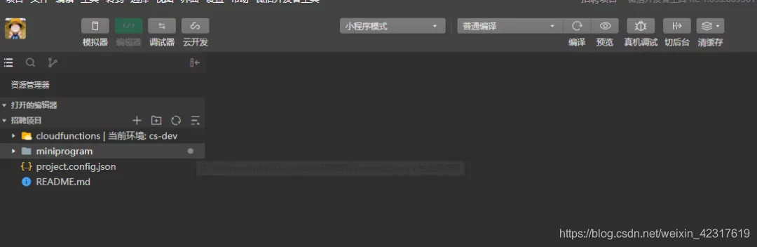 1、使用微信小程序开发工具打开项目,在开发工具中选择项目。