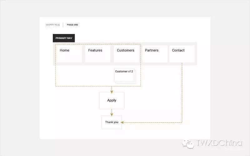 线框流程图是一种新兴的 UX 交付方式,用于记录移动和 Web 应用程序中的用户工作流程和复杂交互。它们非常适合在应用程序中呈现对一个或几个页面的动态更改,但是通过链接在一起的大量相对静态的页面来捕获流程不太有效。线框流程图也可用作团队合作和构思的方法,用于考虑用户工作流程、任务以及构思过程中屏幕设计的每个步骤。