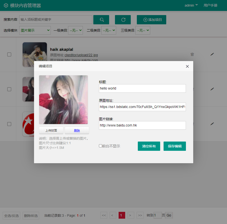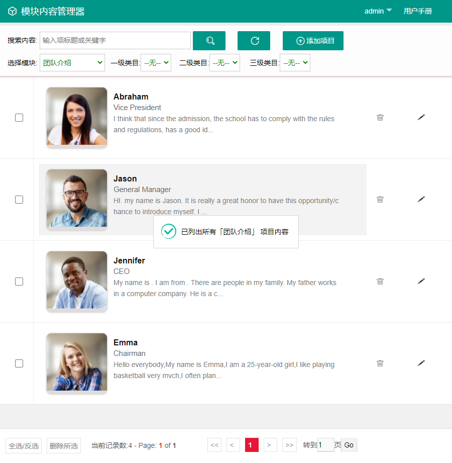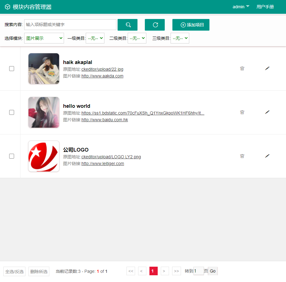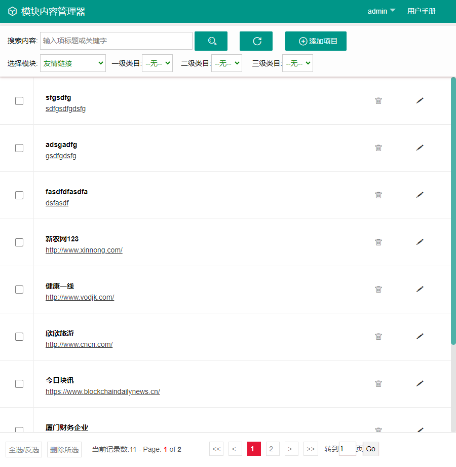 支持自定义分页项数,每页默认显示15项,每页项数可通过自定义根据需要自由增减,方便管理和查看。