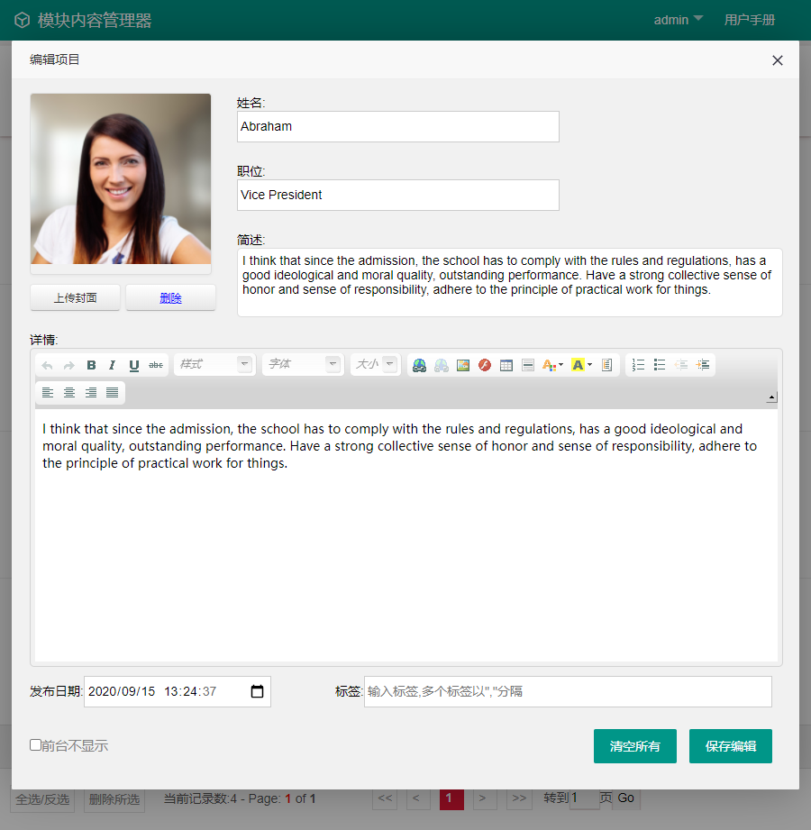 文章发布系统可以发布到多个栏目,支持标题标尺、颜色、副标题和字数统计,支持关键词自动提取,自动记忆和提醒来源,支持栏目作者自动匹配。