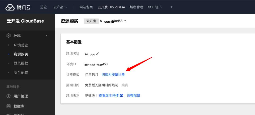 由于cms扩展需要静态网站托管资源,所以只能部署在现收现付的环境中,所以必须先将计费方式切换为现收现付。