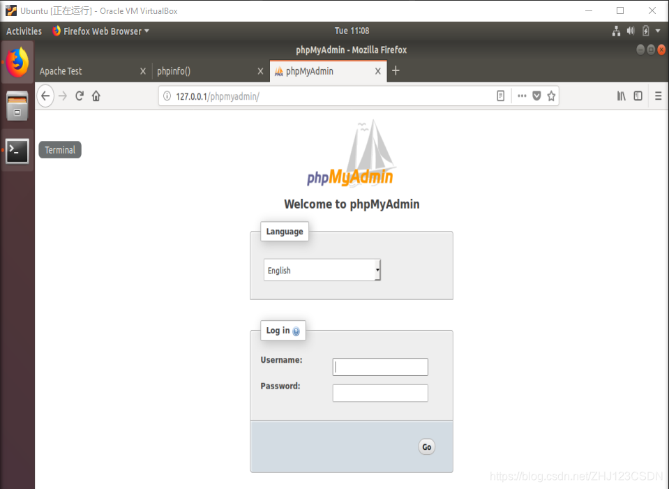 配置完成后,打开火狐测试PHPMyAdmin,出现以下问题。