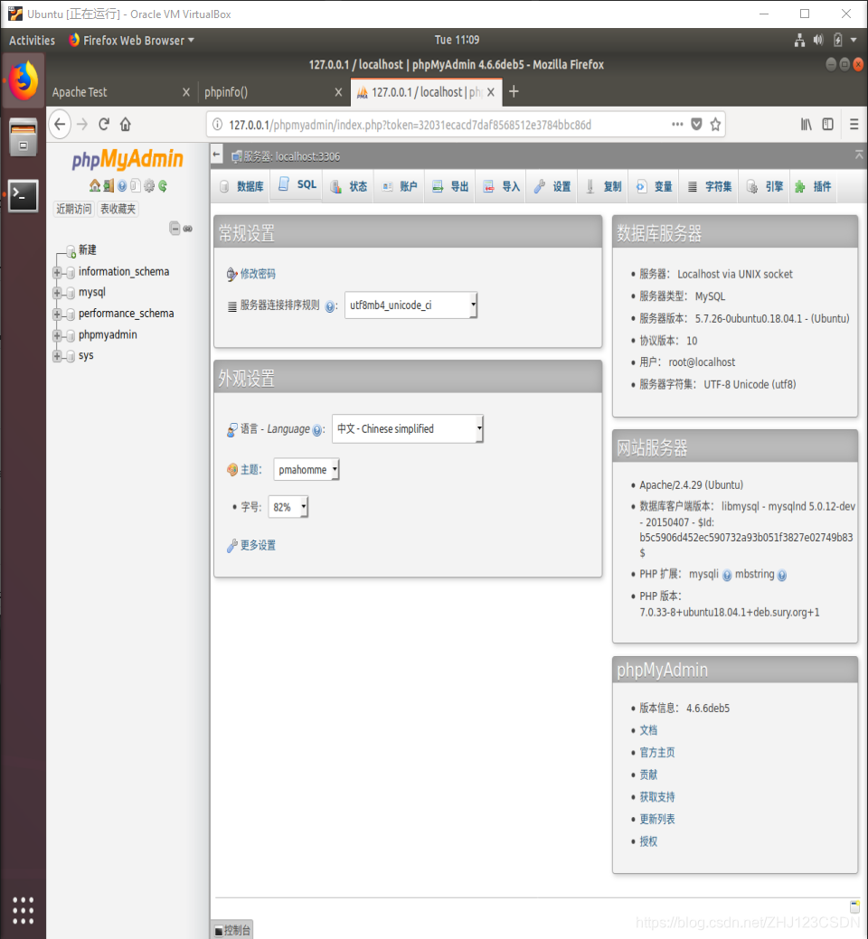 查阅资料,发现问题的原因是我没有安装一些必要的模块,导致PHPMyAdmin配置出现问题。问题是通过查询信息解决的。现在重新打开 PHPMyAdmin 网页,可以看到如下界面。