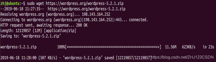 首先使用wget工具下载WordPress官网新版安装包,安装WordPress软件。