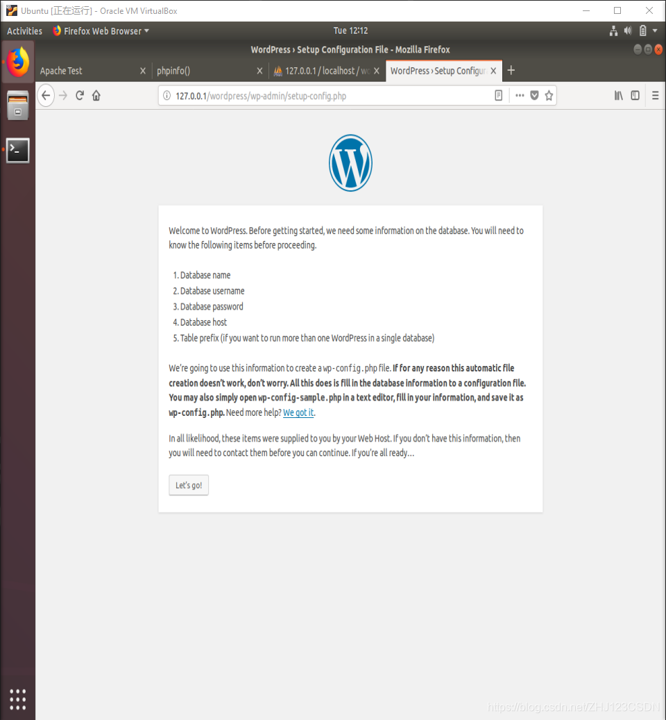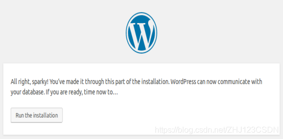 现在,为 WordPress 创建的数据库已准备就绪。之后需要继续配置WordPress,如下图: