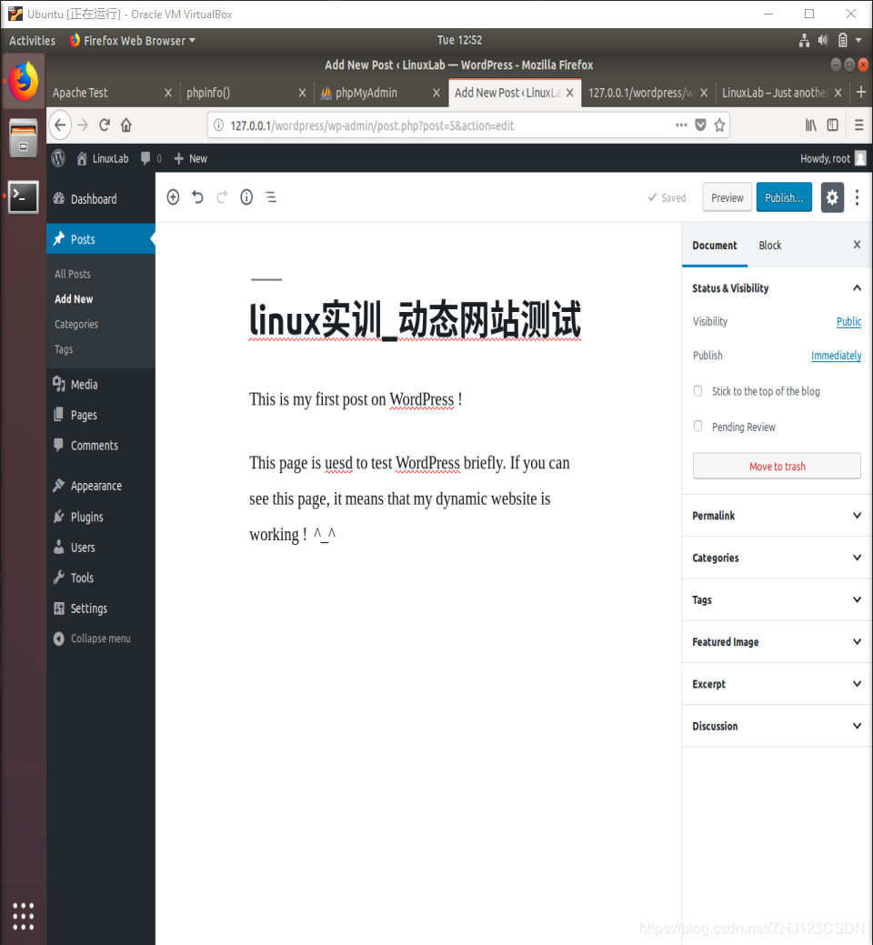 我写了一篇博客用于后台测试。由于虚拟机中ubuntu没有安装中文输入法,所以博客主要是英文写的。
