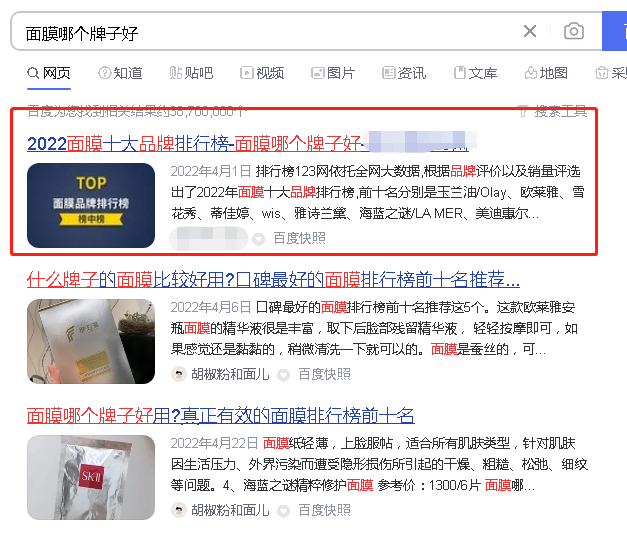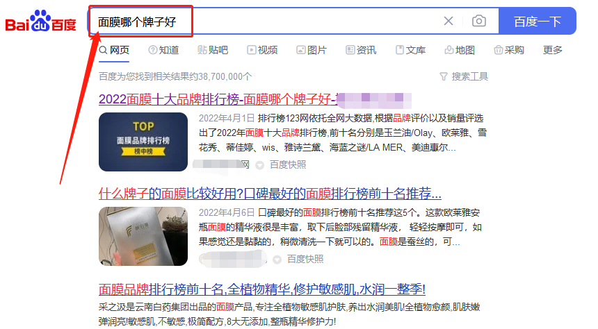 2.搜索(面膜哪个牌子好)的消费者想要看到什么样的结果?