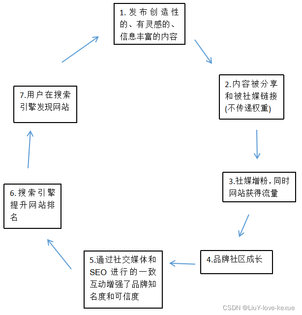 通过优质的内容、社交媒体、SEO,可以形成流量闭环: