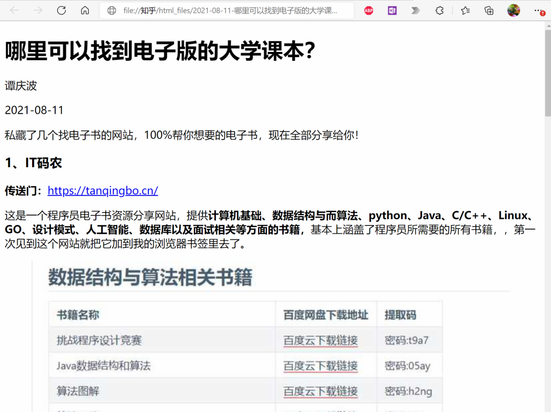 下载大v回答文章的界面在下载大v回答文章的时候,我们发现软件启动了浏览器,同时浏览器的页面会自动进行翻页操作。还是挺神奇的。一会就下载好了,然后我们按提示到软件目录的html_files查看下载的的内容。