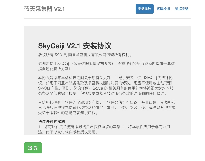 为了促进部署并解决环境兼容性问题,使用了docker来部署和安装skycaiji.