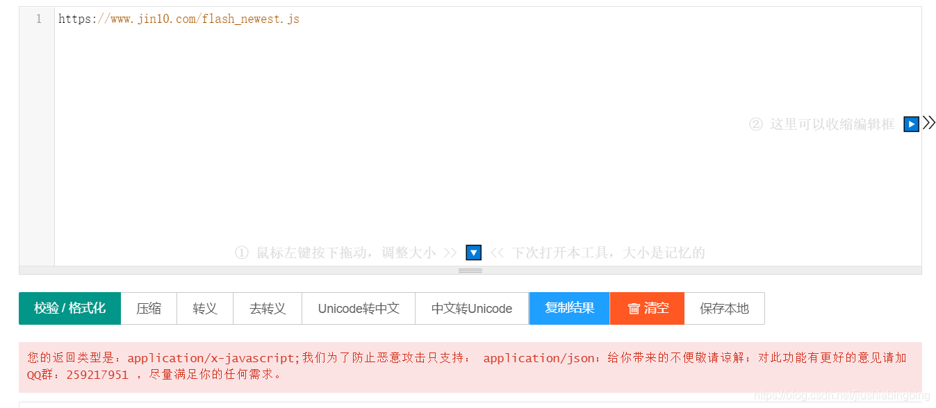 因为我们的目的是提出json数据,为了更直观的看数据结构,我们可以(1).百度搜索json解析器,把对应的url复制到上面解析即可;**(注:这里url是flash_json.js头文件中的url)(2).下载插件