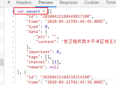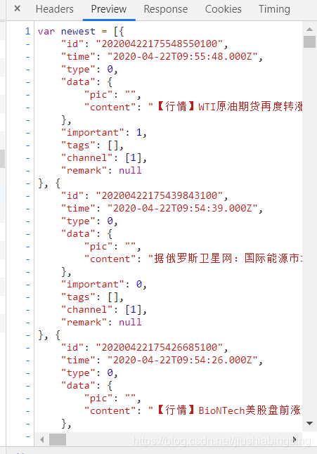 然后找到JS数据部分,你会发现我们需要的alerts的内容保存在“flash_newest.js”上。点击后是这样的