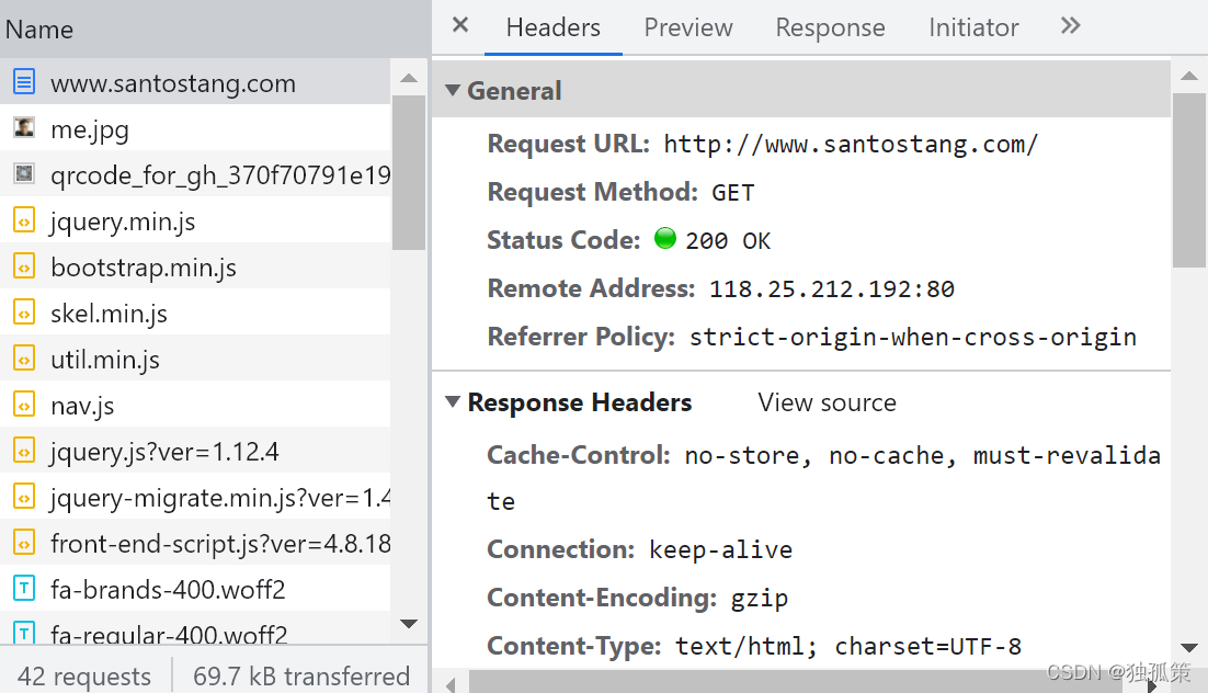 在左侧的请求资源中找到您需要请求的网页,(如果没有,请点击网页左上角的刷新按钮),以本例为例。点击要请求的网页,可以在Headers中看到Requests Headers的详细信息。