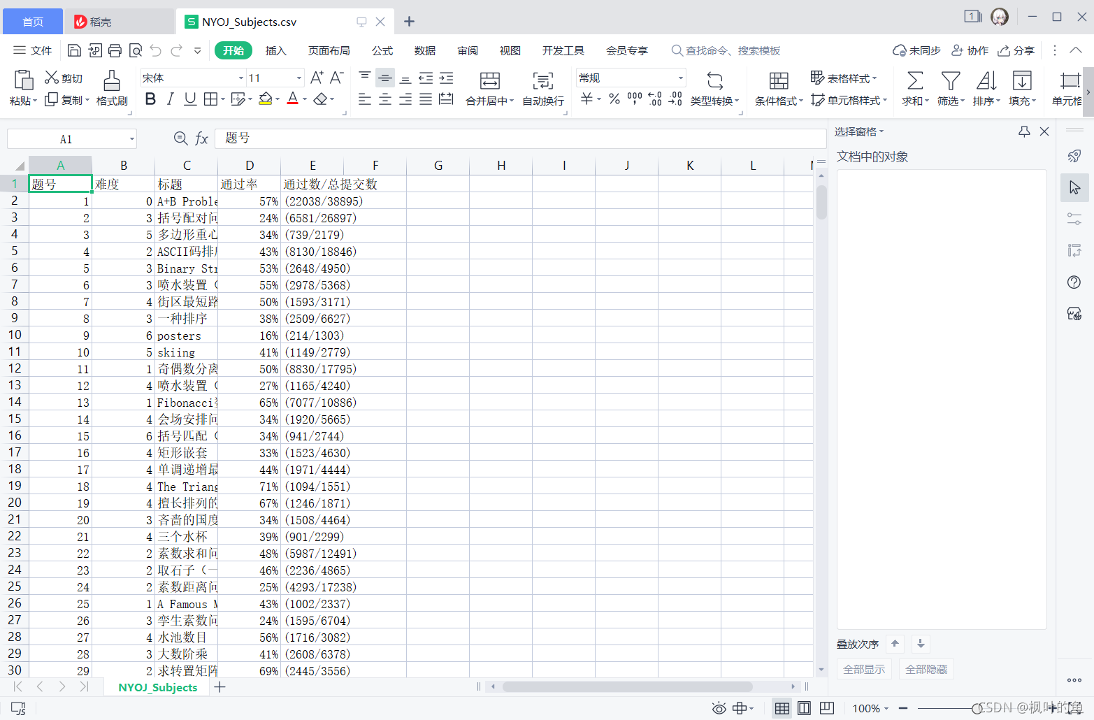 csvHeaders = ['题号', '难度', '标题', '通过率', '通过数/总提交数']