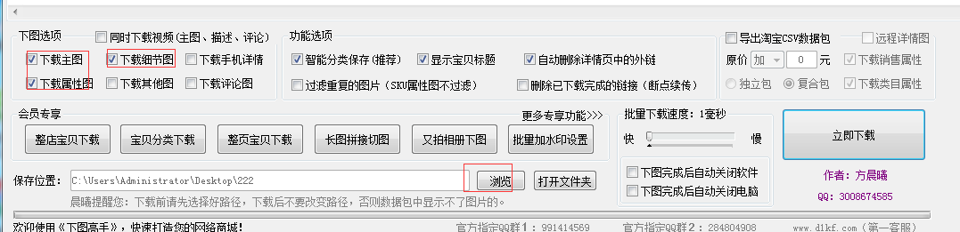 3、先设置软件,勾选主图、属性图、细节图,设置图片位置。