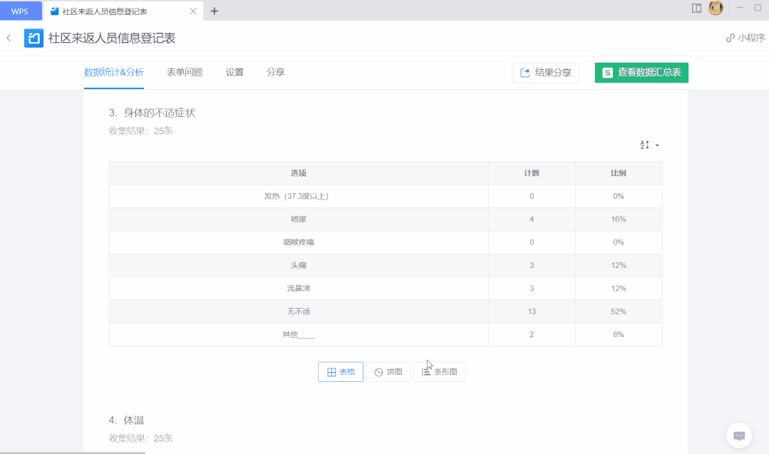 使用表单收集的信息,支持生成可视化图表,让数据呈现更清晰。