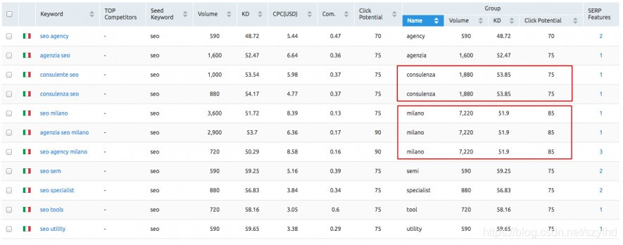 同时,还有30天搜索量、90天搜索量、前三点击占比等重要数据。