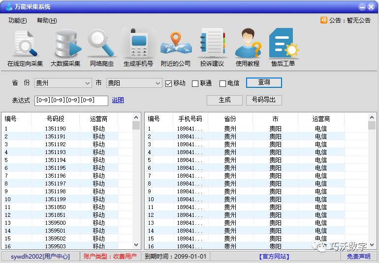 根据用户设置的区域生成手机号码段,并可以根据指定的号码段和用户定义的格式生成手机号码,这是针对区域性营销和组文本消息传递的绝佳选择。