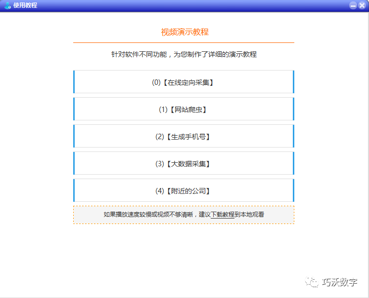 Qiaoowo团队拥有专业的员工,定期组织极其新的业务目录数据。我们努力及时更新极其新的业务数据,同时优化旧的业务数据以确保您通过我们的软件办公室采集所获得的企业数据都是第一手的并且是全新的。我们一直在努力为您争取更好的营销和销售结果!