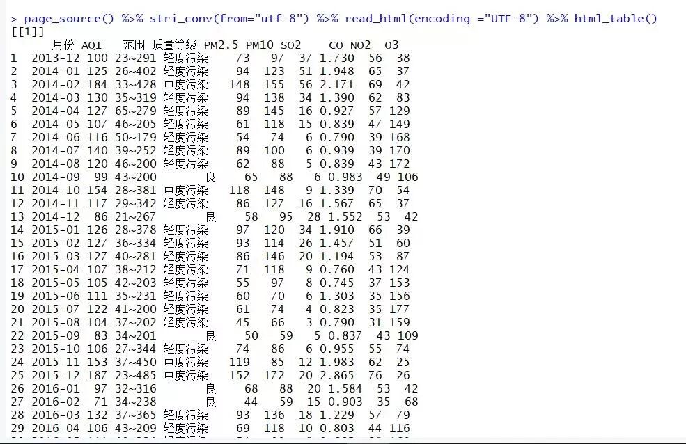 mytable% stri_conv(from="utf-8") %>% read_html() %>% html_table()
