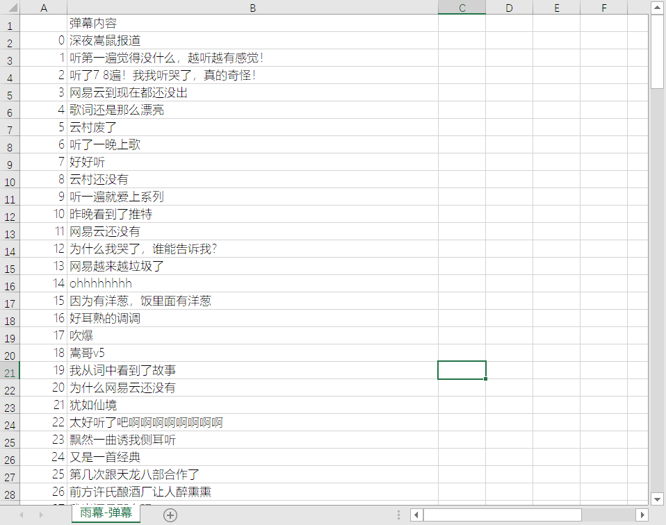 运行之后,我们就可以得到我们需要的数据评论数据了。