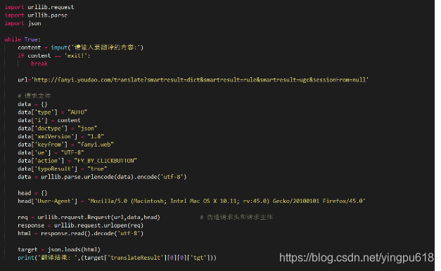接下来,我们将 url 设置为目标 网站 并使用我们的请求库访问该站点。
