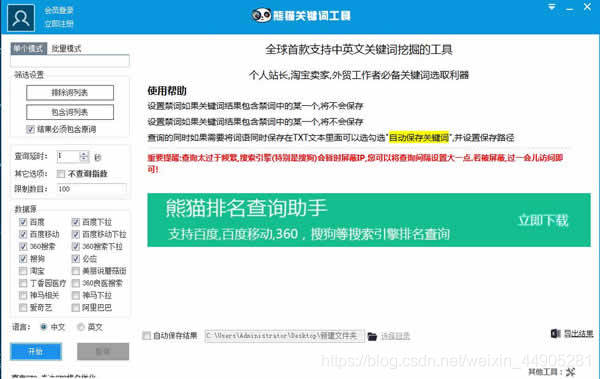 其主要功能:百度索引查询、相关关键词分析、长尾关键词挖掘、索引批量查询、关键词竞争力等,是典型的关键词扩展工具,使用方法同上,不同的是可以直接下载安装工具包。操作更方便。