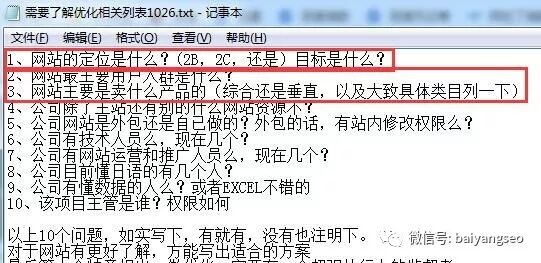 上面截图是针对新站的,如果是老站,还要加上比如:最近有哪些操作?站内技术方面?站外外链方面等等。