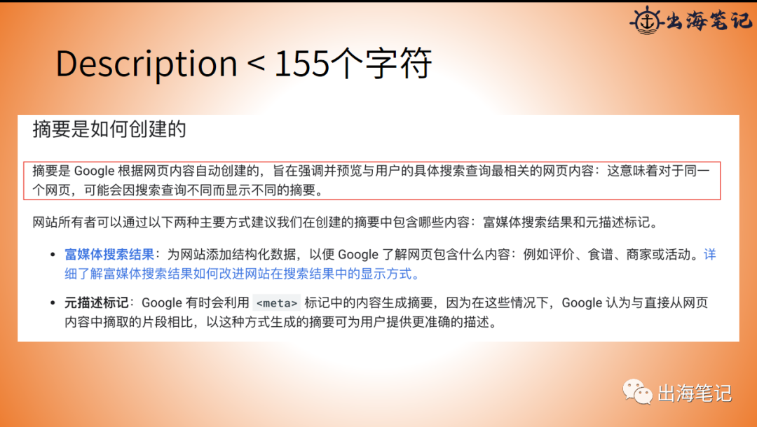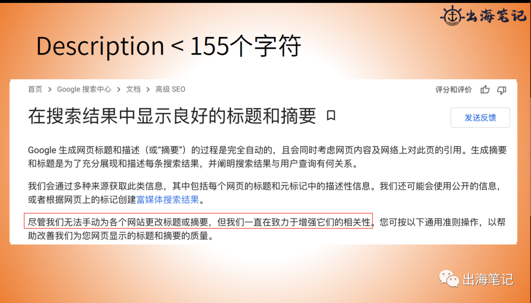 19.description描述标签:同样,应用你抉择的关键词跟词组,写一个简短的解释,描写你的网页或你网站。200个字符之内,到达搜寻引擎完整展现的后果,能够应用一些提醒或影响点击的作用。