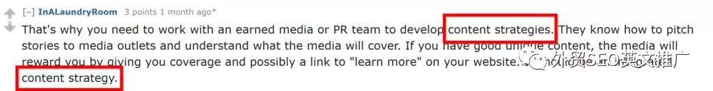 举个例子,我在关于link building这个话题的相应threads中,发现“content strategy”和“content strategies”这几个术语反复被提到: