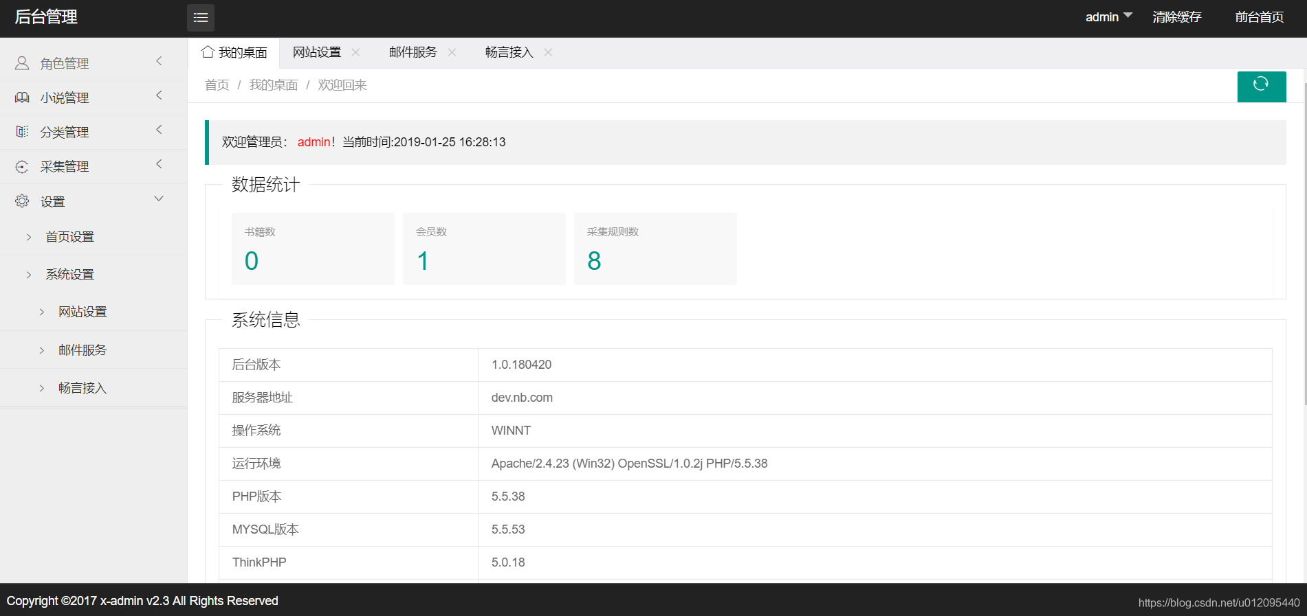 后端地址: 在网站地址后添加admin.php(例如: your website / admin.php),默认帐户密码为: admin,admin