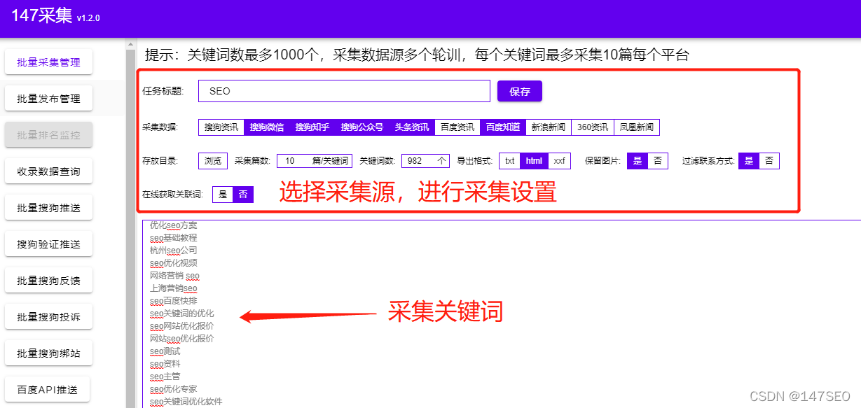 2、可同时创建数十或数百个采集任务(一个任务可支持上传1000个关键词)
