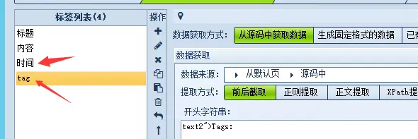 7、 可以看到文章的超链接A标签在类为“contList”的标签里面,所以文章 URL的CSS选择器只需要设置为.contList一种。如下: